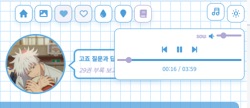 스킨 적용 기본색상 및 홈커버라이트/다크/배경음악 및 사이드바 버튼카테고리 / 홈커버