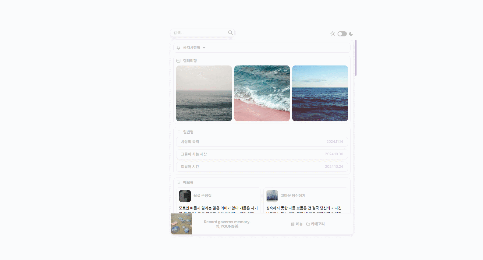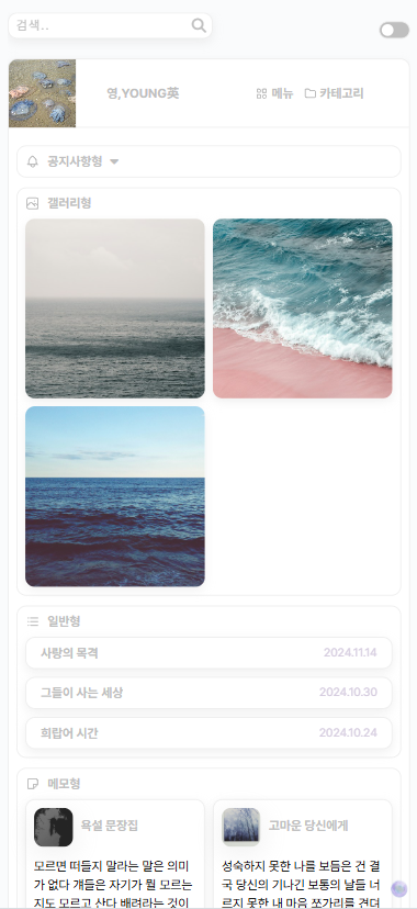 홈커버 (공지사항, 갤러리형, 일반형, 메모형, 요약형, 디데이형, 이미지 슬라이드)