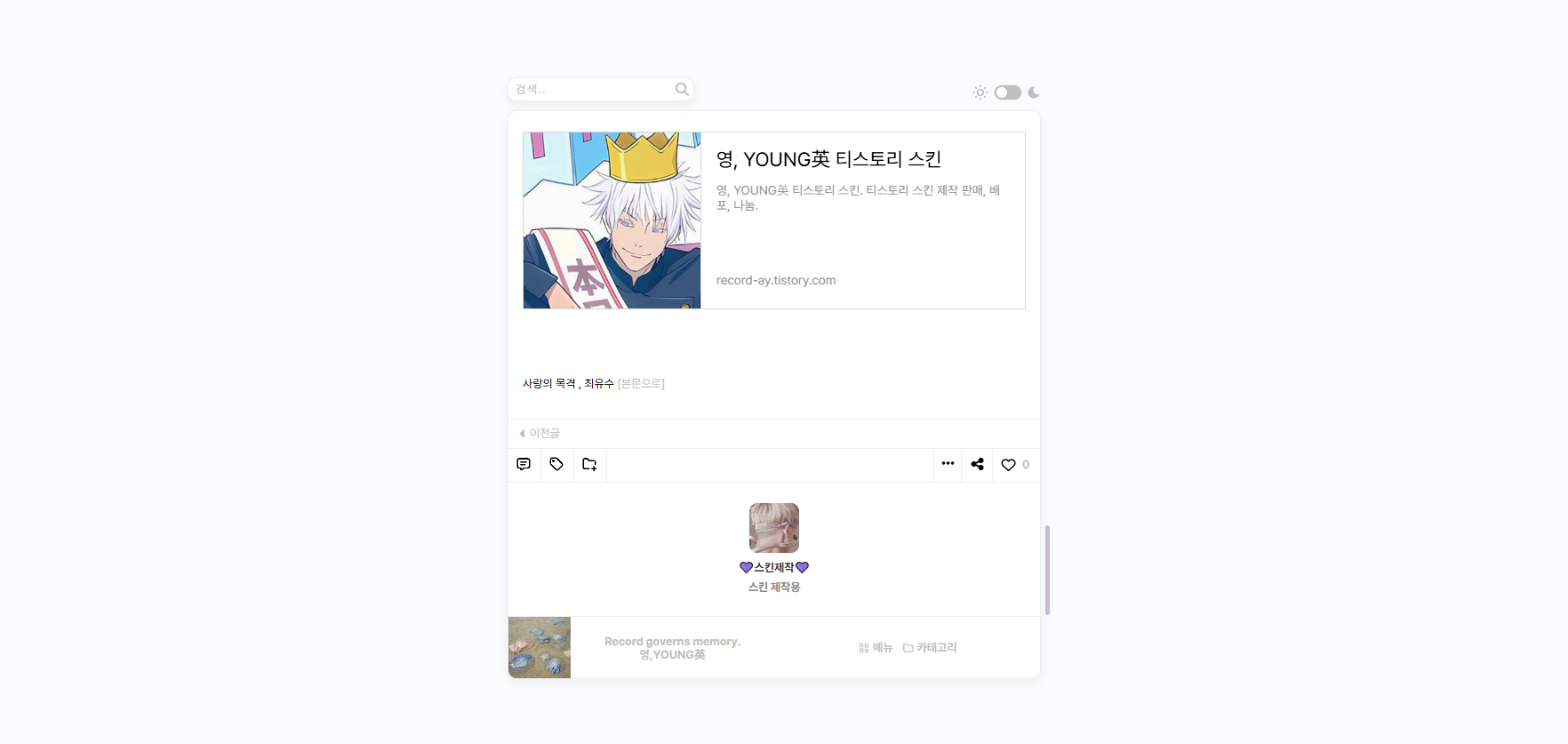 주소 끝에 /m/이 붙어있으면 스킨이 적용되지 않습니다