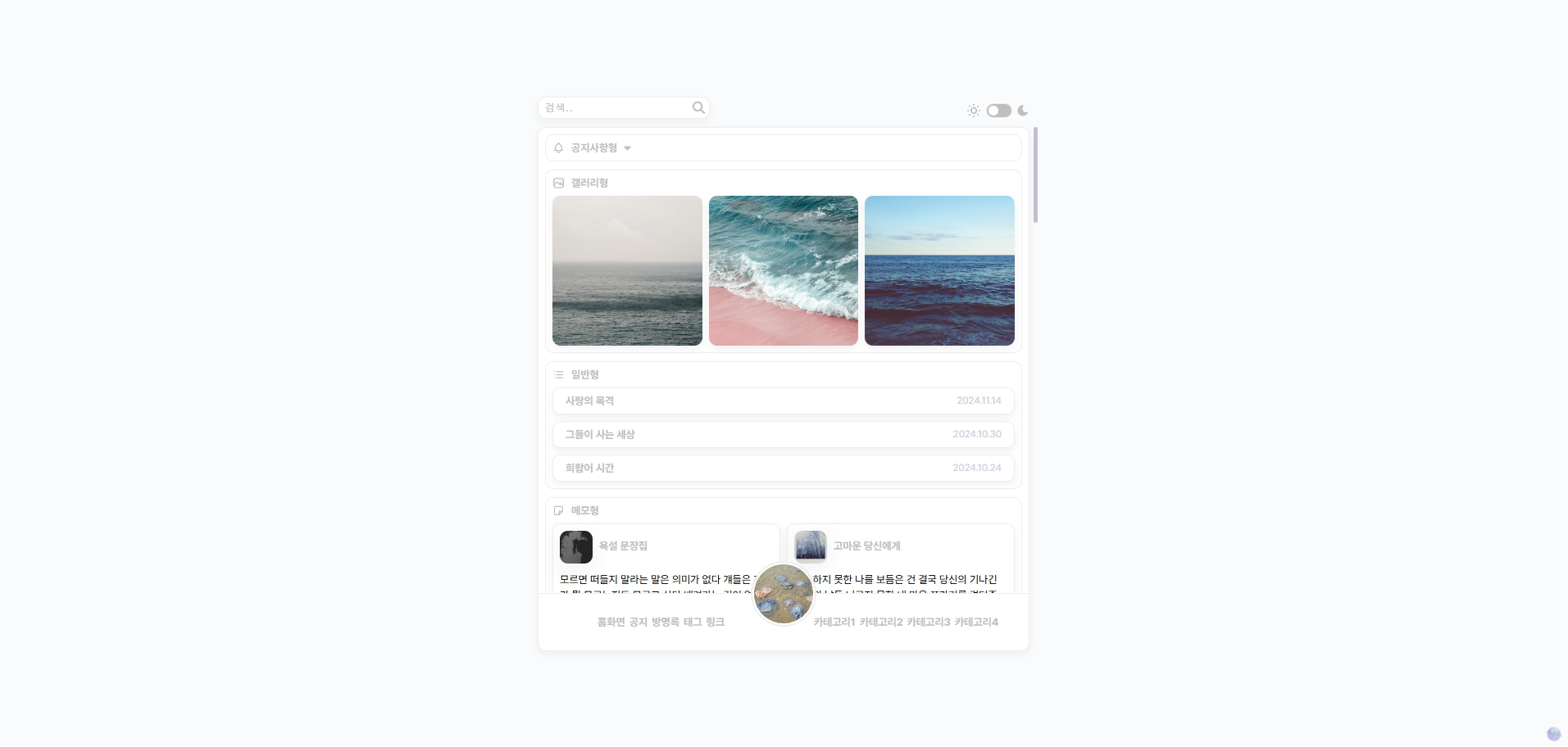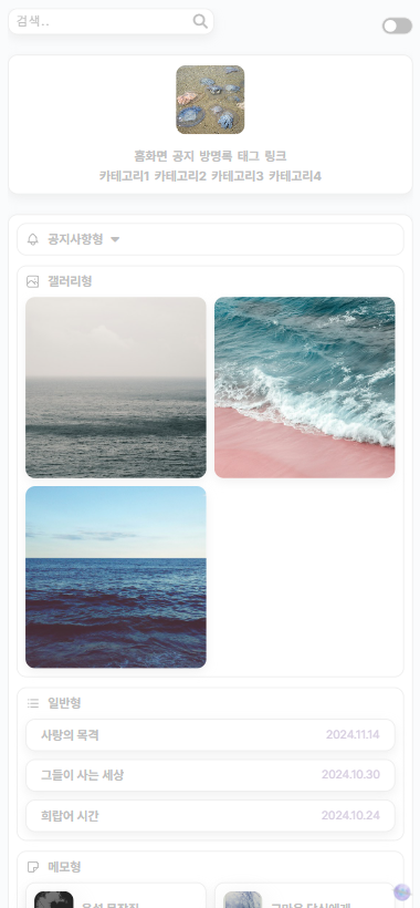 게시판 유형 5가지 (갤러리형, 목록형, 메모형, 요약형, 디데이형)