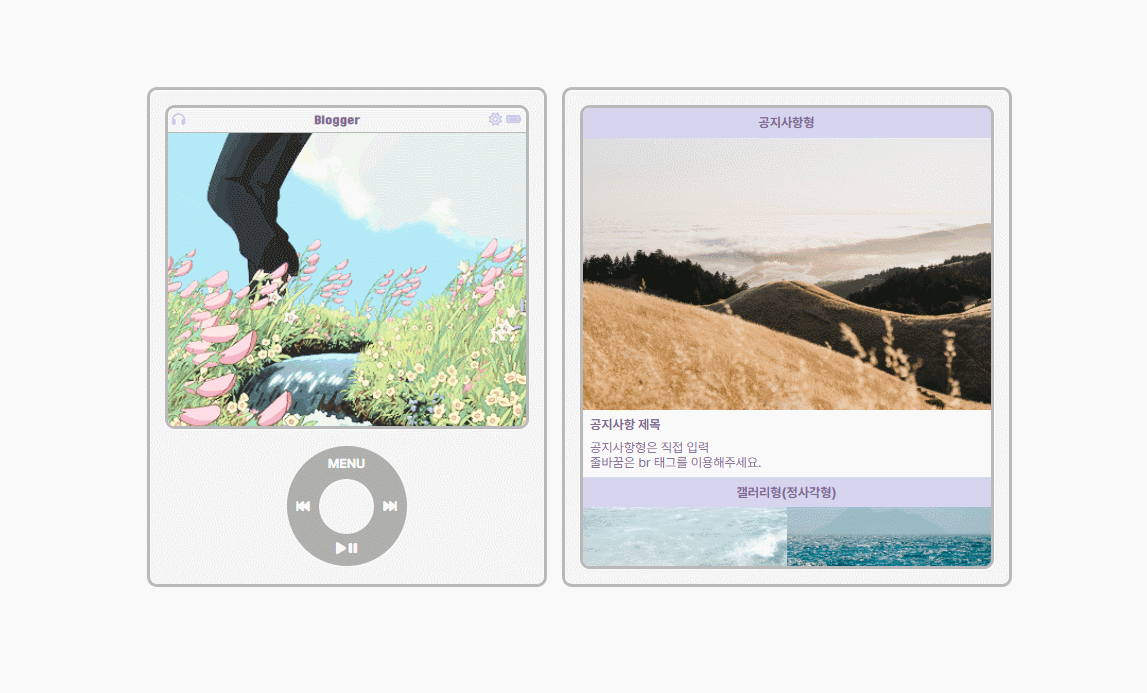 * 이벤트스킨01, 스킨10 부터는 기존 갤러리형 → 갤러리형1(정사각형), 갤러리형2(세로형)으로 변경됩니다.