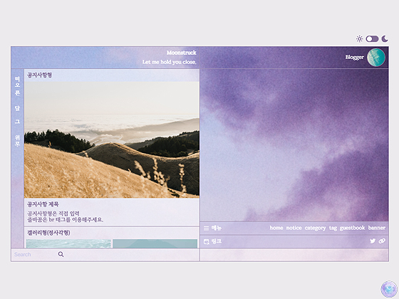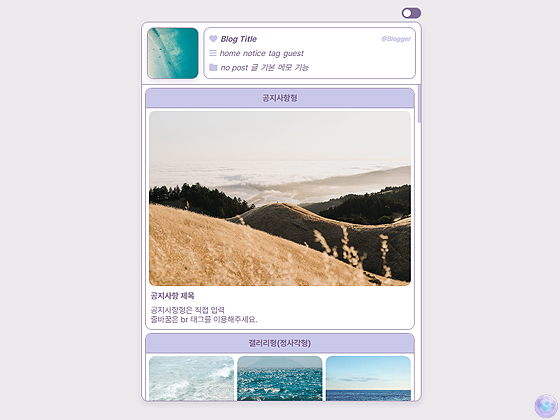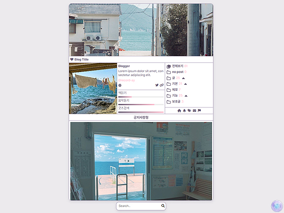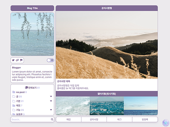+ 중앙 컨텐츠 정보/메뉴(링크 및 태그) & 이미지 선택가능 (스킨편집하기창에서 수정)