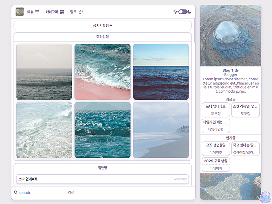 + 그 외 사이드바, 반응형 디자인이 조금 변경 되었습니다.