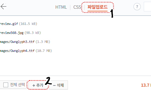 - 파일업로드 - 하단 추가 선택 후
