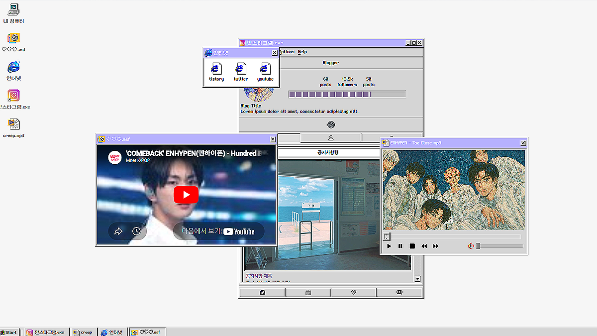 이미지 많이 넣기, 이것저것 자유롭게 모아두는 구성, 레트로&빈티지, 보라색